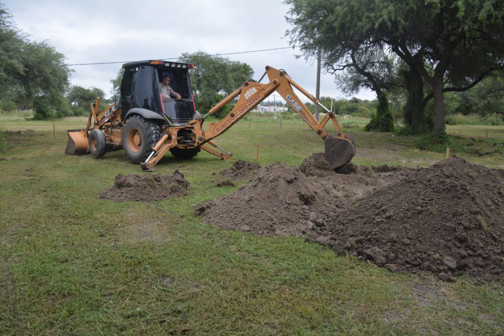Empleados municipales realizan el movimiento de tierra para el trazado de las veredas de la plaza «Paseo Oasis». Posteriormente nivelarán el suelo, colocarán broza y compactarán para colocar el hormigón.
